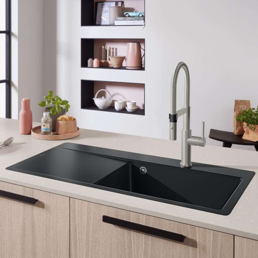 Kuchynská páková batéria s flexibilným ramenom s prepínaním prúdov