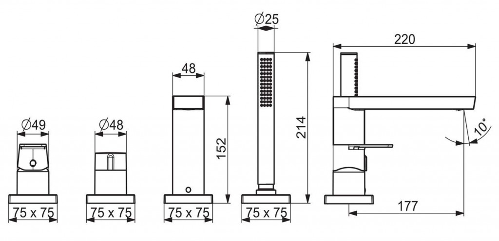 Štvorotvorová batéria Stela pre inštaláciu na okraj vane