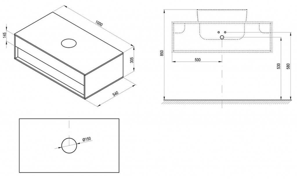 - 1 x vystužená horná doska pre inštaláciu umývadlá, predvŕtaný otvor uprostred