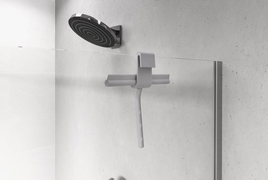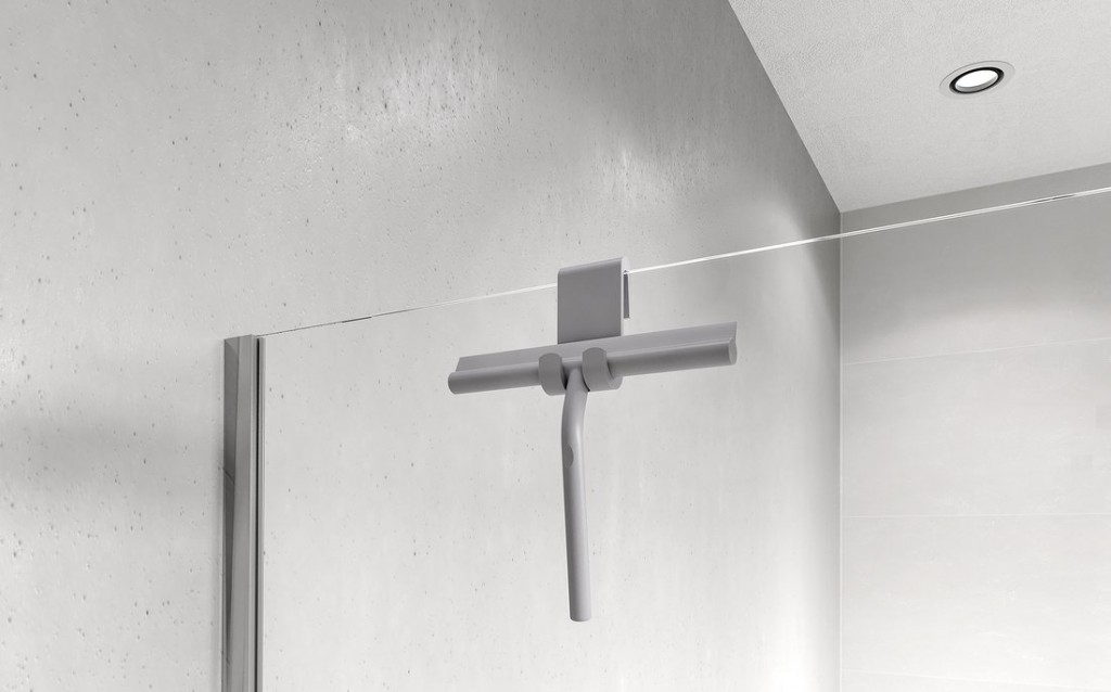 Stěrka je určena k zavěšení na sklo bezrámového sprchového koutu (tloušťka skla max 10 mm). Stěrka je vyrobena z kovu a celý její povrch je potažen matným silikonem. Výhodou silikonové stěrky je její pružnost - při neočekávaném pádu neponičí sprchovou vaničku nebo vanu a zároveň nedochází k nepříjemnému kontaktu se sklem a jeho případného poškrábání.