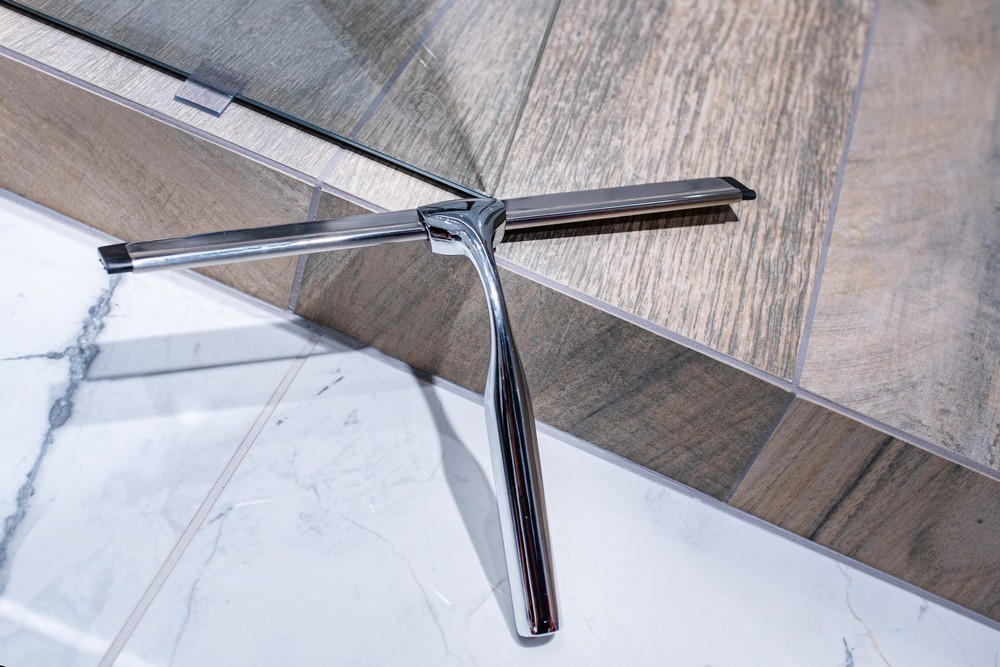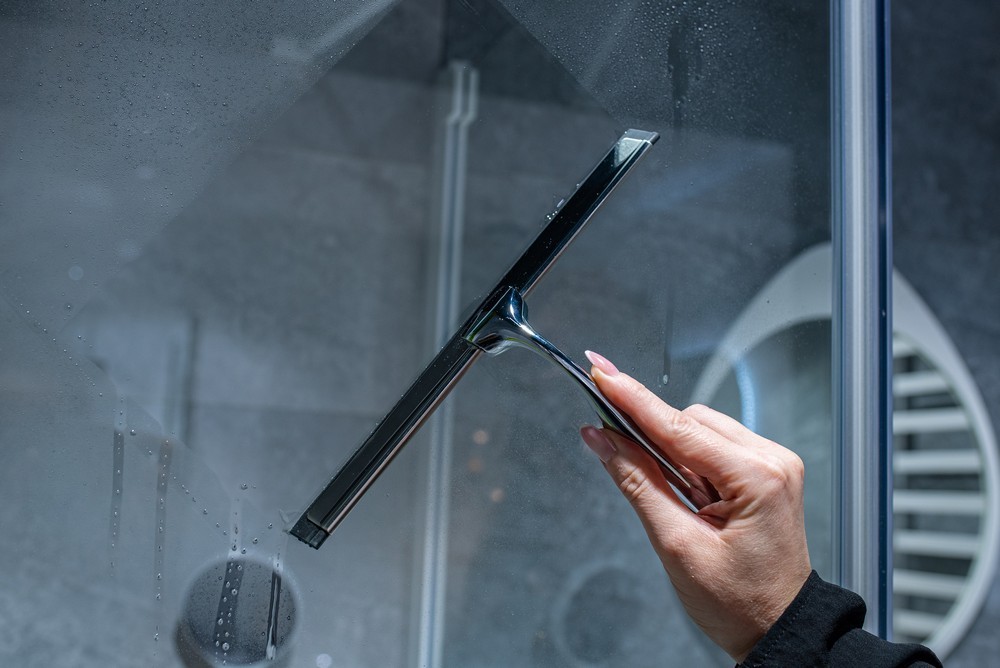 Elegantná stierka na sprchové kúty, vaňové zásteny a zrkadlá. Je vyrobená zo zinku a nerezovej ocele. Balenie obsahuje háčik podlepený samolepiacou páskou na zavesenie stierky.