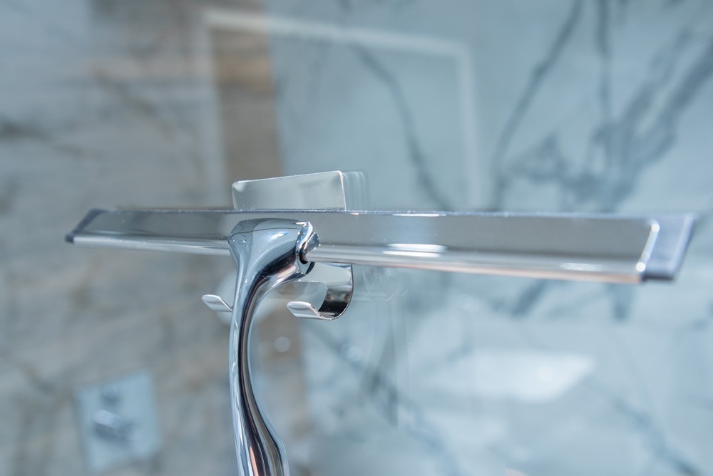 Kvalitná, ergonomická a robustná celokovová stierka vhodná do akejkoľvek kúpeľne. Súčasťou balenia je aj držiak, ktorý sa lepí na obklad, sklo ai.