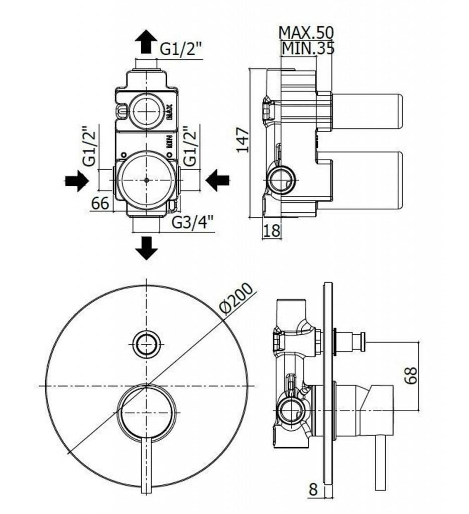 - spodné pripojenie 3/4 "G