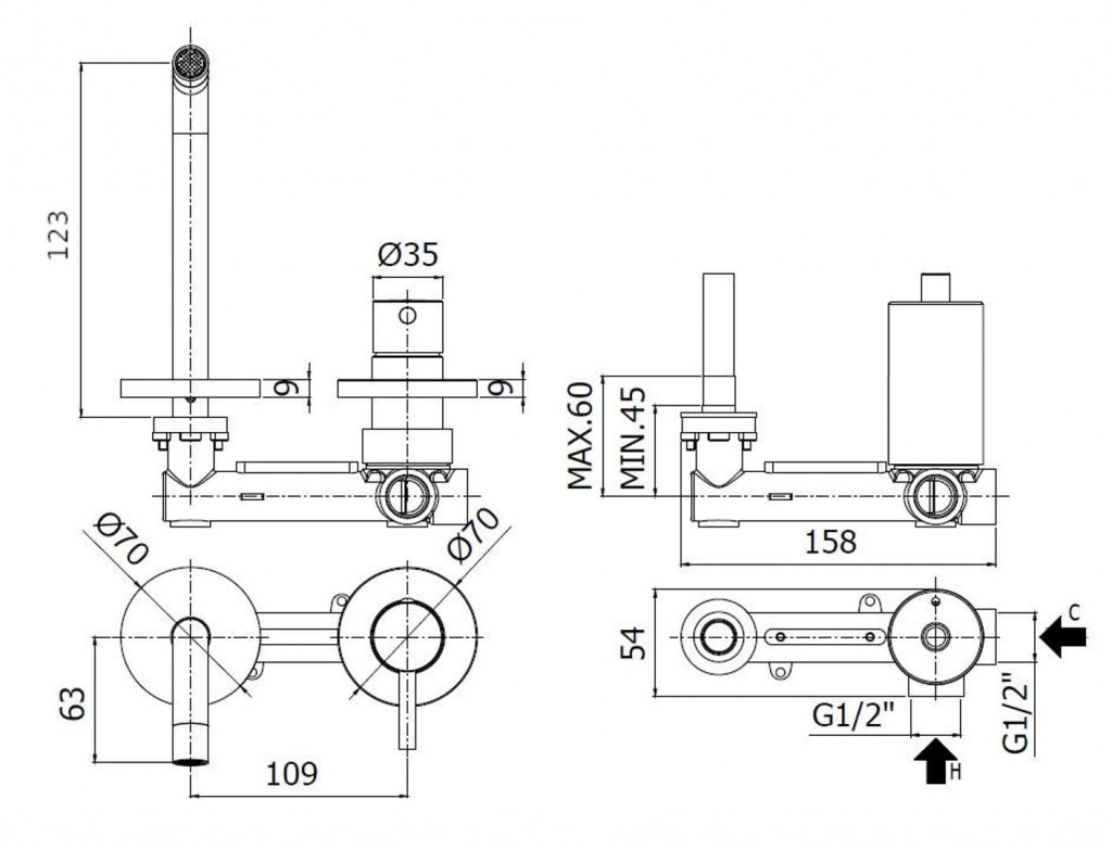 - inštalácia na montážne podomietkové teleso, ktoré je súčasťou batérie