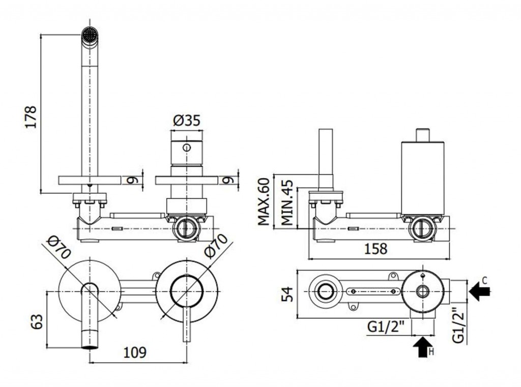- inštalácia na montážne podomietkové teleso, ktoré je súčasťou batérie