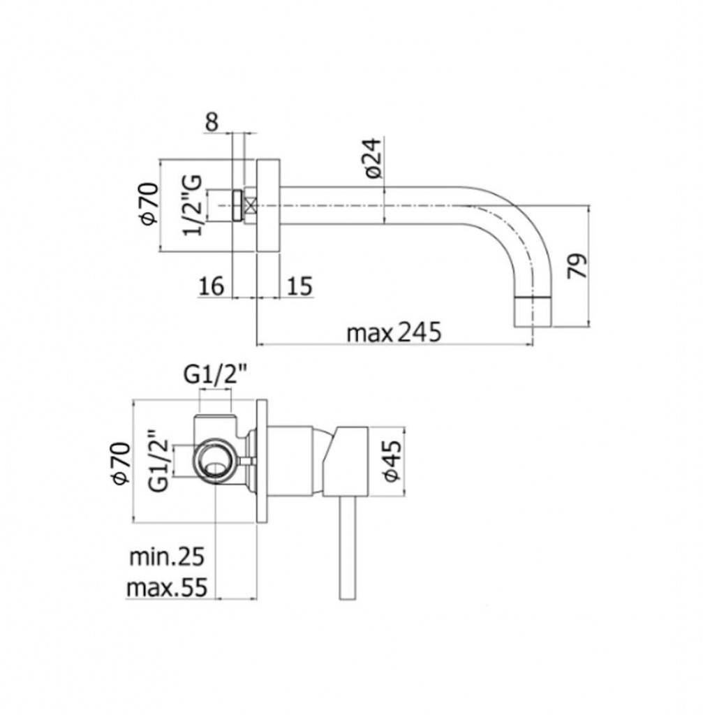 - dĺžka výtoku 245 mm