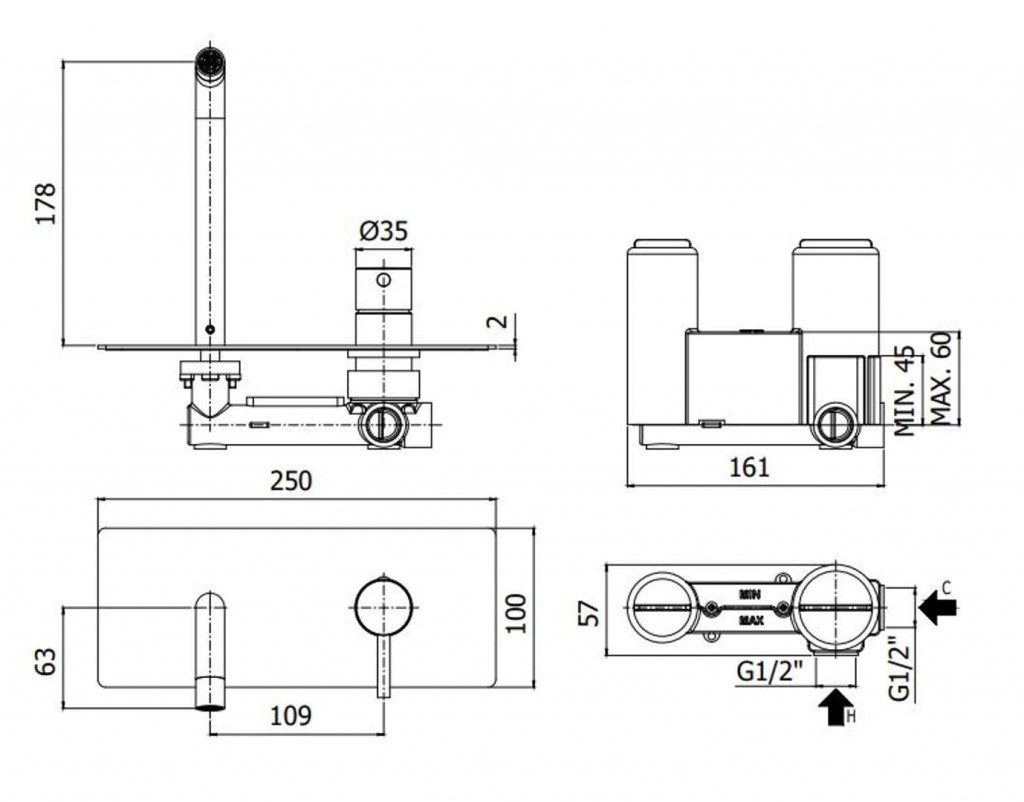 - inštalácia na montážne podomietkové teleso, ktoré je súčasťou batérie