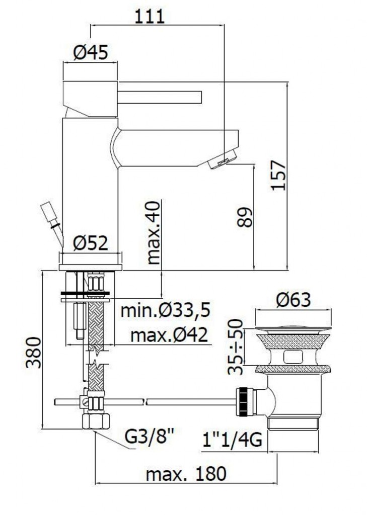 - dĺžka výtoku 111 mm, komfortná zóna 89 mm