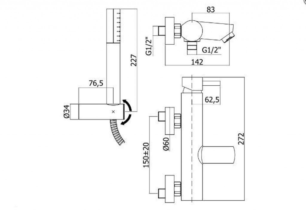 Vaňová nástenná páková batéria so sprchovacím príslušenstvom