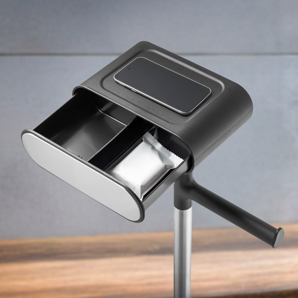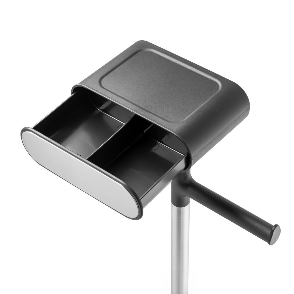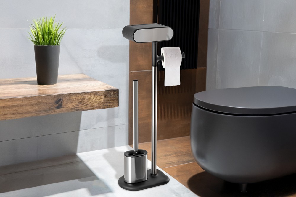 Popis: Moderný a multifunkčný WC stojan AWD INTERIOR 1980, ktorý kombinuje elegantný dizajn s praktickým riešením. magnetickú odnímateľnú nádobku na toaletnú štetku. Vďaka vstavanému magnetu zostáva nádoba bezpečne na svojom mieste, ale je možné ju ľahko vybrať pre bezproblémové čistenie. je praktická zásuvka s dvoma priehradkami, ideálna na uloženie vecí, ako sú vlhčené obrúsky, hygienické doplnky alebo iné drobné nevyhnutnosti, ktoré je dobré mať po ruke. Toto inovatívne riešenie v sebe spája modernú estetiku, vysoko kvalitné remeselné spracovanie a užívateľské pohodlie a je tak nepostrádateľným prvkom každej funkčnej kúpeľne.