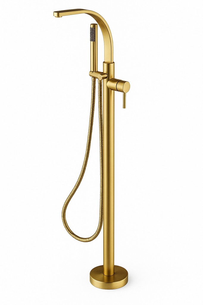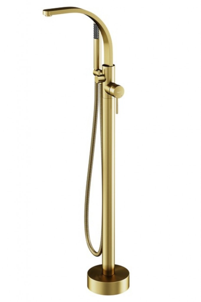 Vysoká vaňová batéria DECCO I zlatá brúsená farba s výškou 1055 mm od európskeho dodávateľa vodovodných batérií BESCO . Batéria je určená na inštaláciu do podlahy a oceníte ju najmä ak máte voľne stojacu vaňu. Dodávané vrátane príslušenstva - sprchová hlavica s hadicou. Stojanková vaňová batéria pre moderné kúpeľne. Dodávame v šiestich farbách a to lesklý chróm, čierna matná, grafitová alebo zlatá, zlatá lesklá, zlatá brúsená.