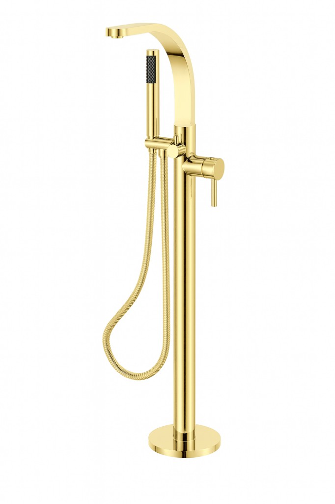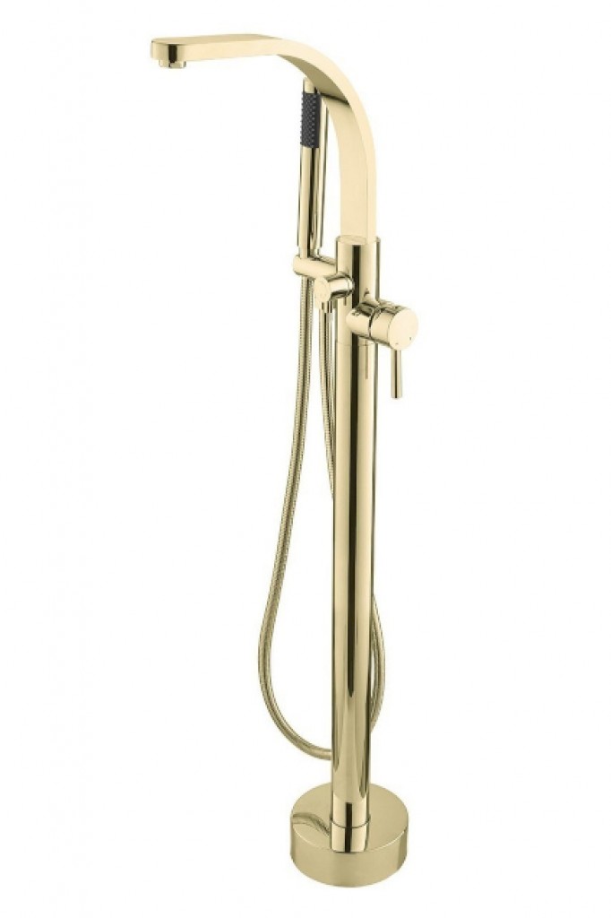 Vysoká vaňová batéria DECCO II zlatá lesklá farba s výškou 1005 mm od európskeho dodávateľa vodovodných batérií BESCO . Batéria je určená na inštaláciu do podlahy a oceníte ju najmä ak máte voľne stojacu vaňu. Dodávané vrátane príslušenstva - sprchová hlavica s hadicou. Stojanková vaňová batéria pre moderné kúpeľne. Dodávame v šiestich farbách a to lesklý chróm, čierna matná, grafitová alebo zlatá, zlatá lesklá, zlatá brúsená.