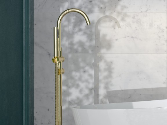 Stojanková batéria do podlahy vyzerá skvele v kombinácii s voľne stojacou vaňou.