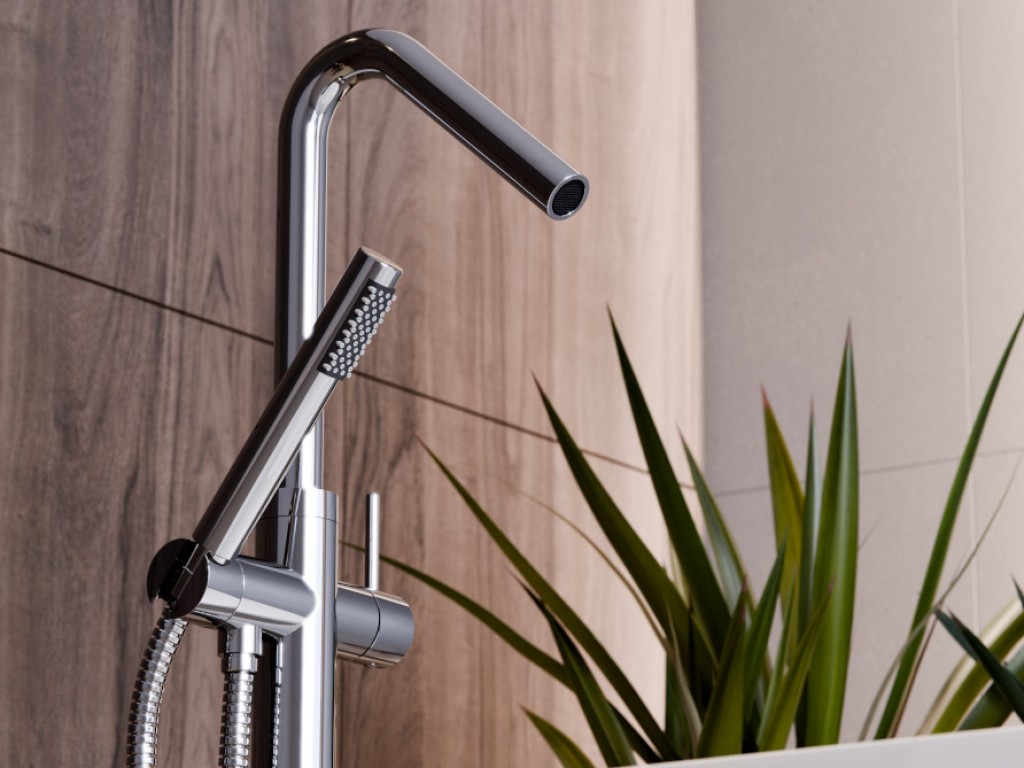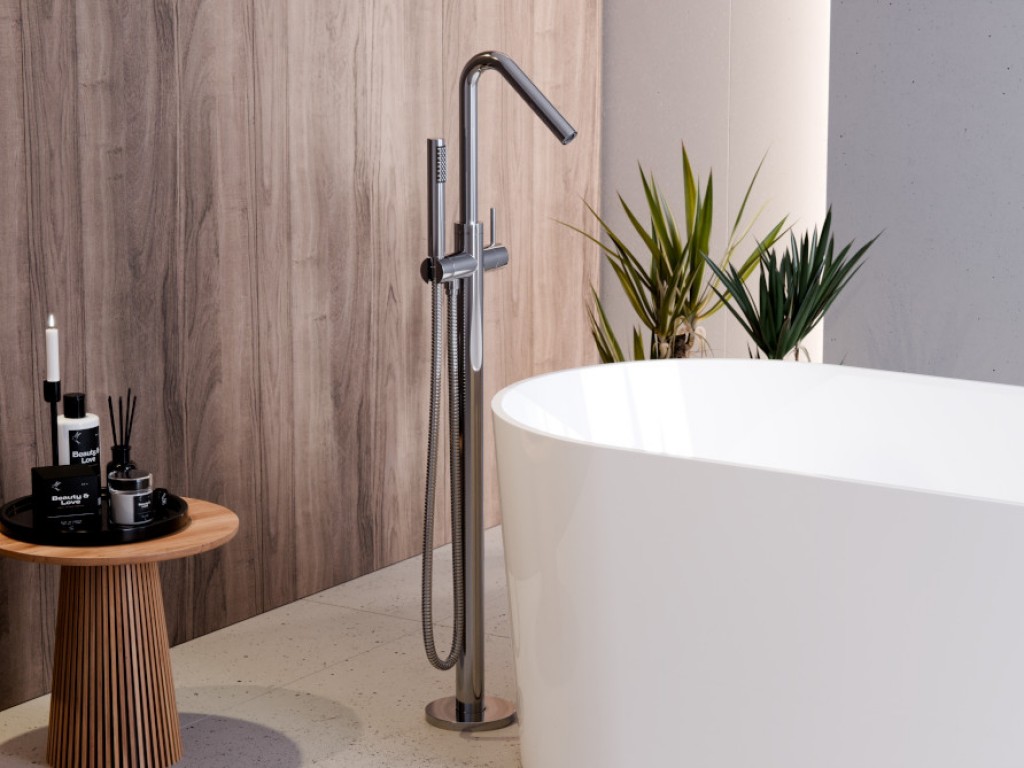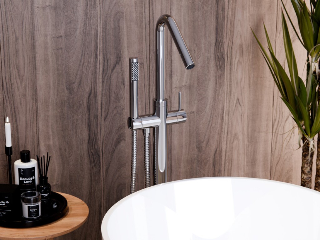 Stojanková batéria do podlahy vyzerá skvele v kombinácii s voľne stojacou vaňou.