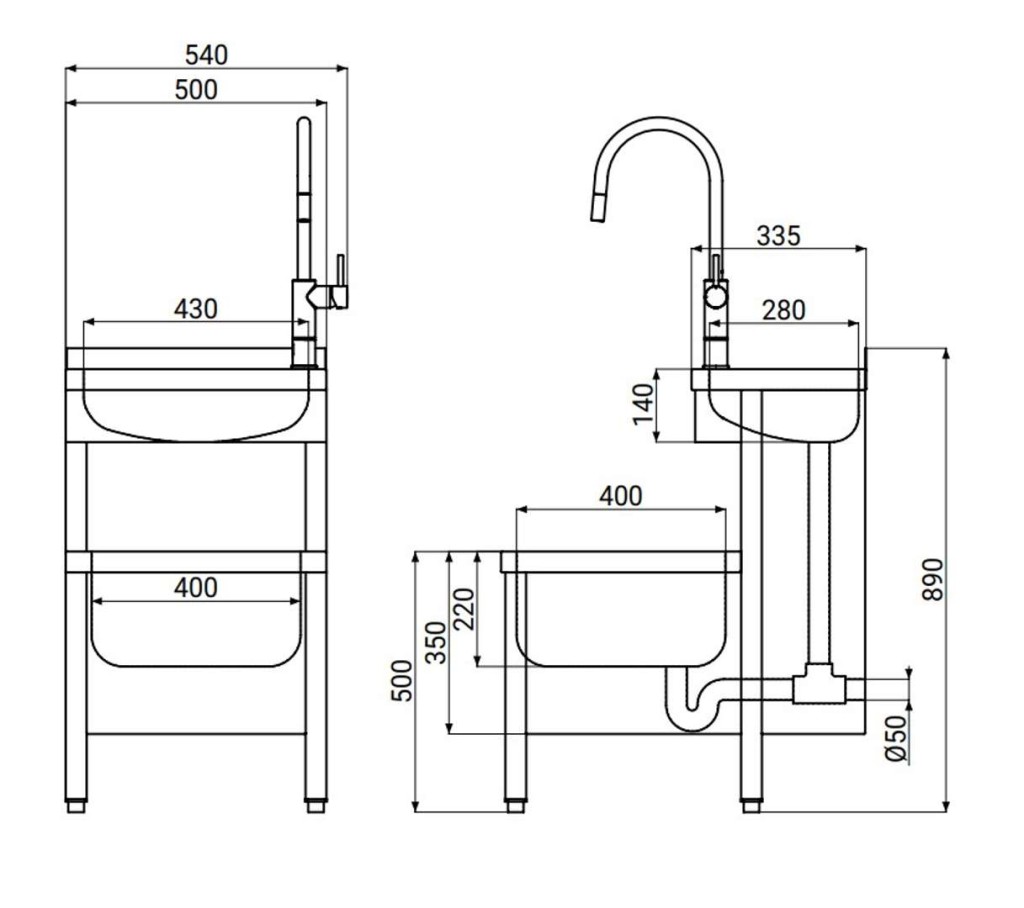 - samostatne stojaca nerezová kombinovaná výlevka s umývadlom a mriežkou