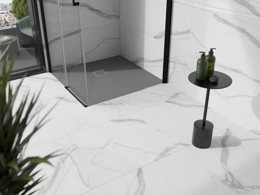 Ultratenká, sprchová vanička Stone+ je vyrobená z minerálneho kompozitu s kamennou štruktúrou. Je to materiál s dlhou životnosťou a tvrdosťou, navyše je príjemne teplý na dotyk. Malá výška sprchovej vaničky umožňuje tradičné montáž na podlahe alebo vkladanie do podlahy a vytvára jedinečný a jednotný povrch . Sprchová vanička bola navrhnutá tak, aby voda mohla voľne prúdiť smerom k odtoku . Poskytuje rýchly a efektívny odtok vody z povrchu vaničky, zabraňuje tvorbe kaluží a nezaplaví kúpeľňu.