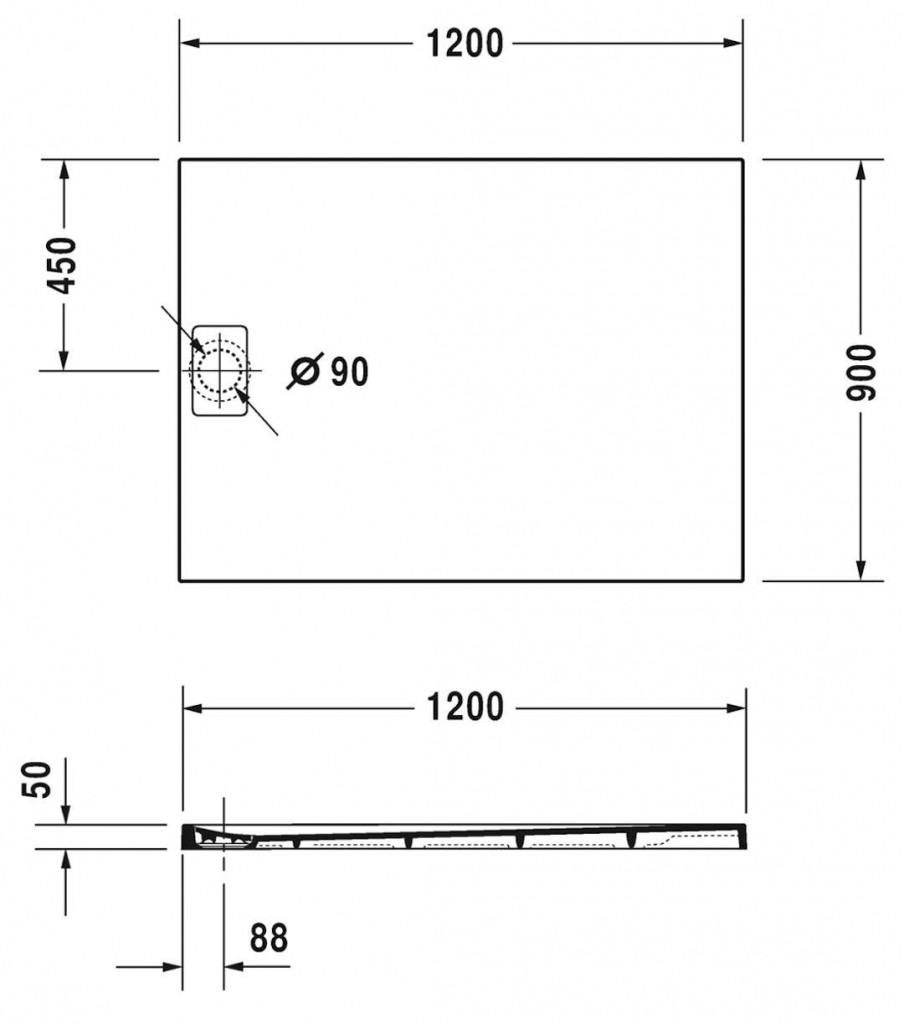 - odpad: Ø 90 mm, hranatá krytka odtoku