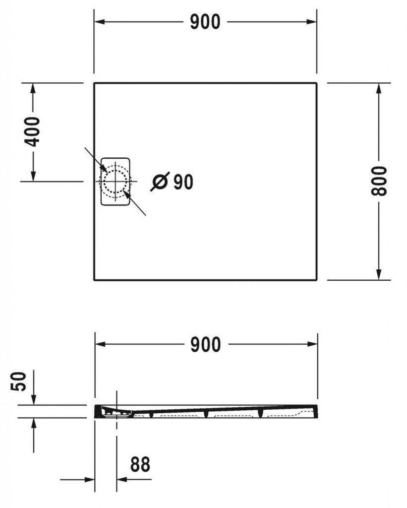 - odpad: Ø 90 mm, hranatá krytka odtoku