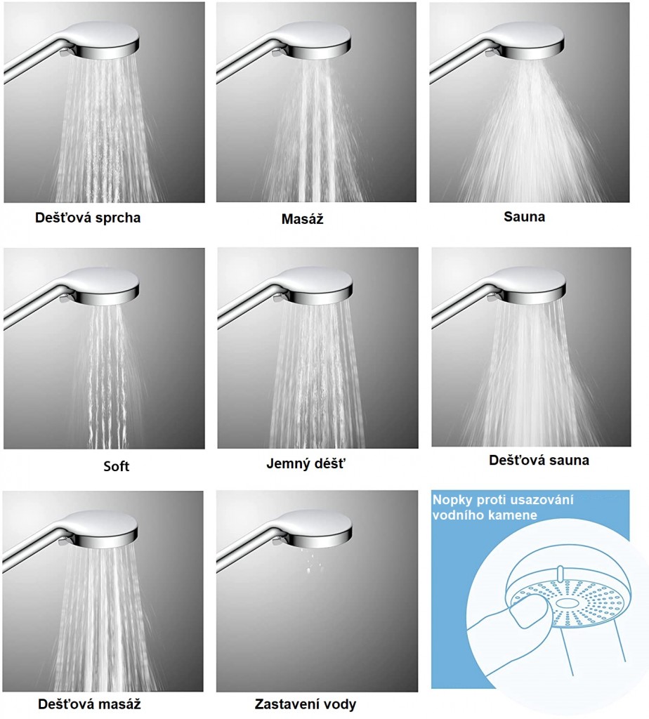 - 8 variantov prúdu pre rozmanité potešenie zo sprchovania