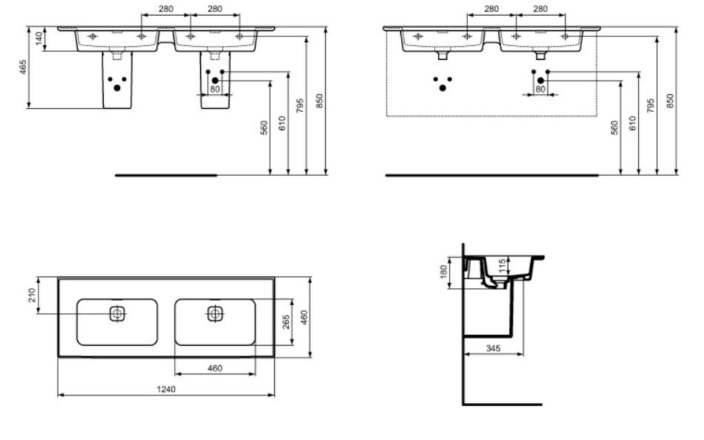 Nábytkové dvojumývadlo bez otvoru pre batériu