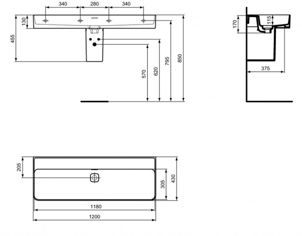 Umývadlo bez otvoru pre batériu