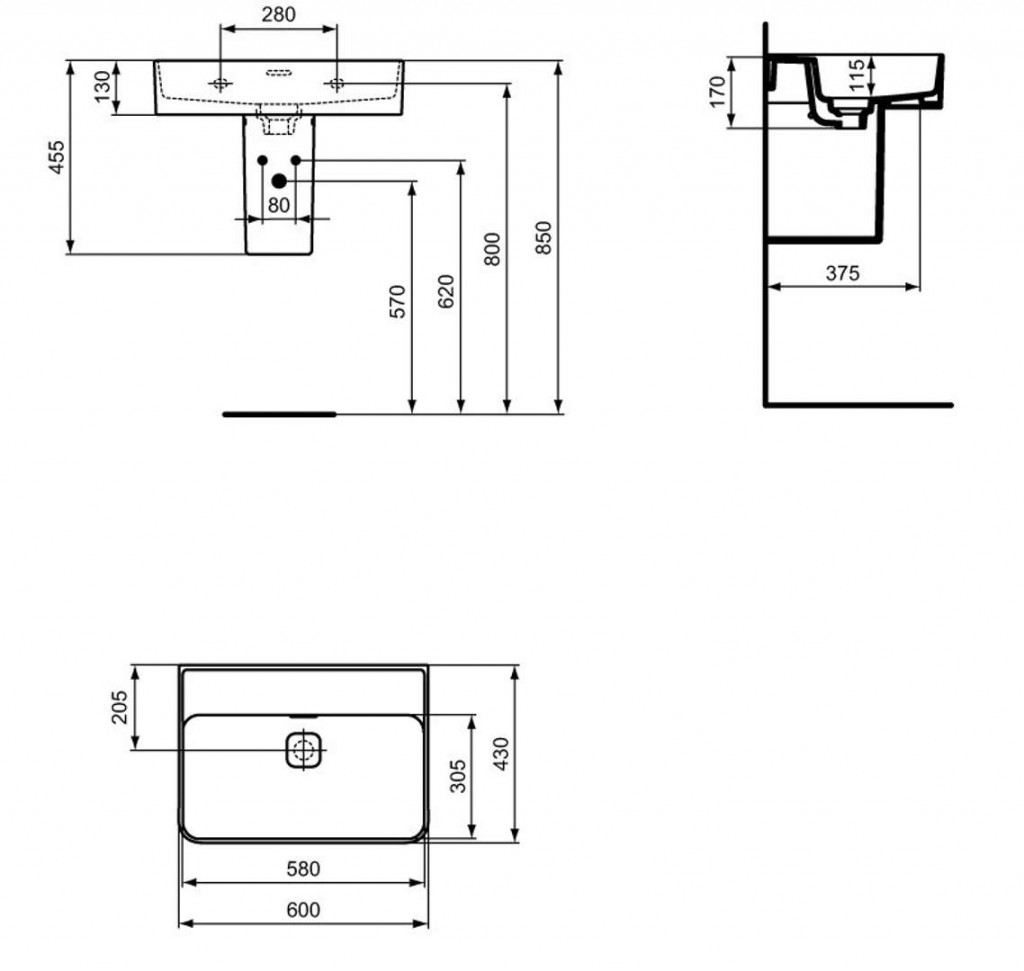 Umývadlo bez otvoru pre batériu