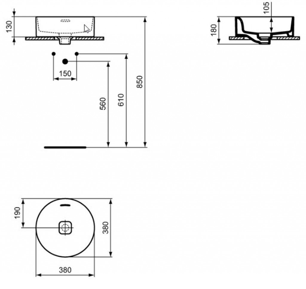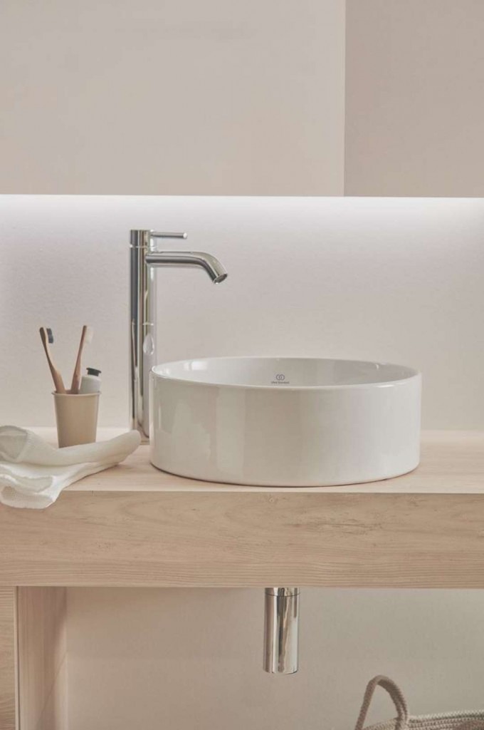 Guľaté umývadlo na dosku bez otvoru pre batériu