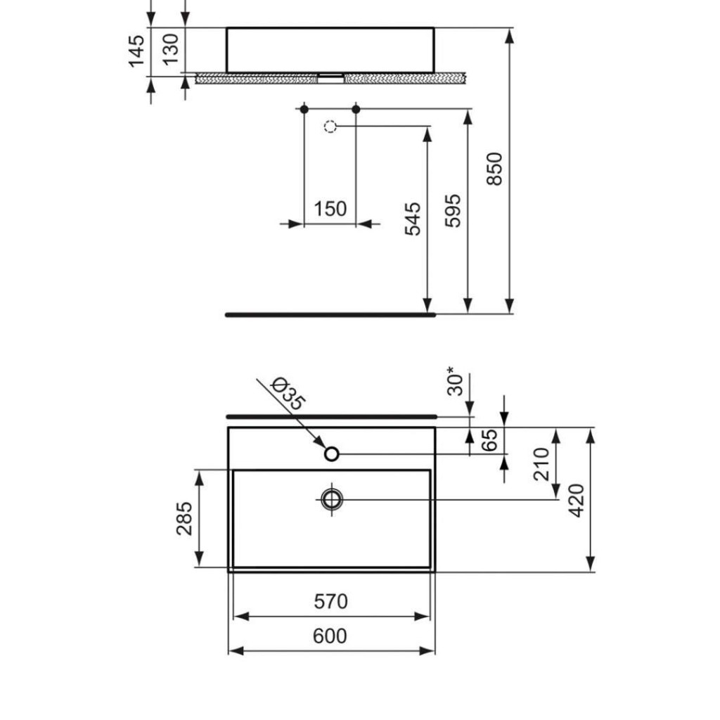 - materiál: sanitárna keramika, spodná strana brúsená / zadná strana glazovaná
