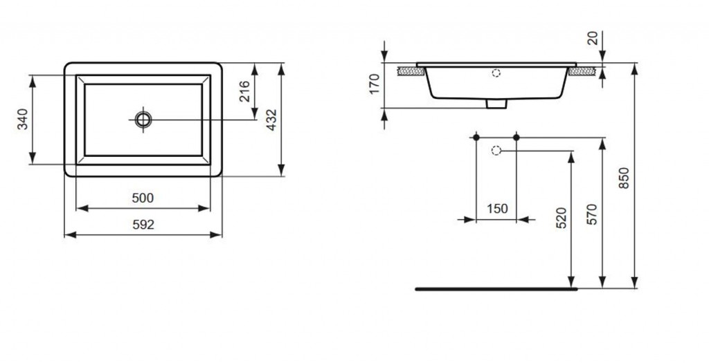 - inštalácie: zapustením do dosky, vrátane výrezové šablóny (KK3360000)