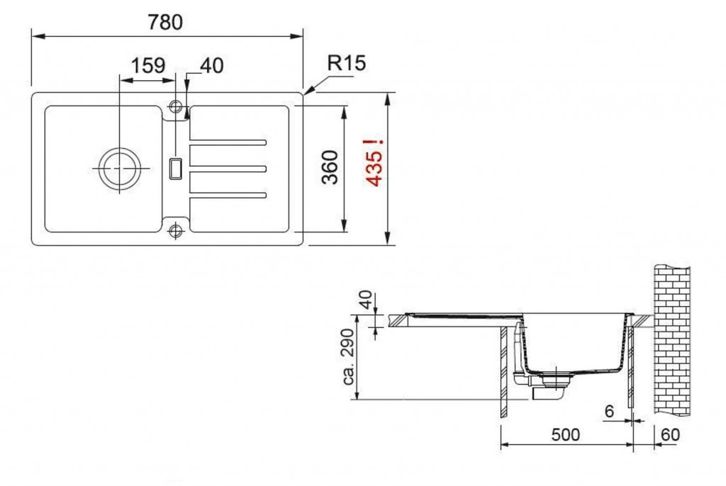 Fragranitový drez STG 614-78, horná montáž
