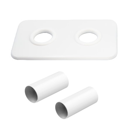 Univerzálna krycia rozeta a krycie trubičky , ktoré sú určené pre stredové ventily (napr. TERM-SET, SINGLE-SET atď.). V balení sú vždy 1 ks krycej rozety a 2 ks krycích trubičiek . Vyrobené z mosadze a dodávame v troch farebných variantoch (chróm, biela a čierna farba) .