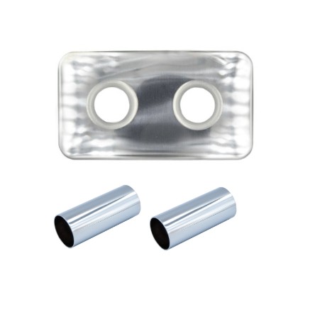 Univerzálna krycia rozeta a krycie trubičky , ktoré sú určené pre stredové ventily (napr. TERM-SET, SINGLE-SET atď.). V balení sú vždy 1 ks krycej rozety a 2 ks krycích trubičiek . Vyrobené z mosadze a dodávame v troch farebných variantoch (chróm, biela a čierna farba) .