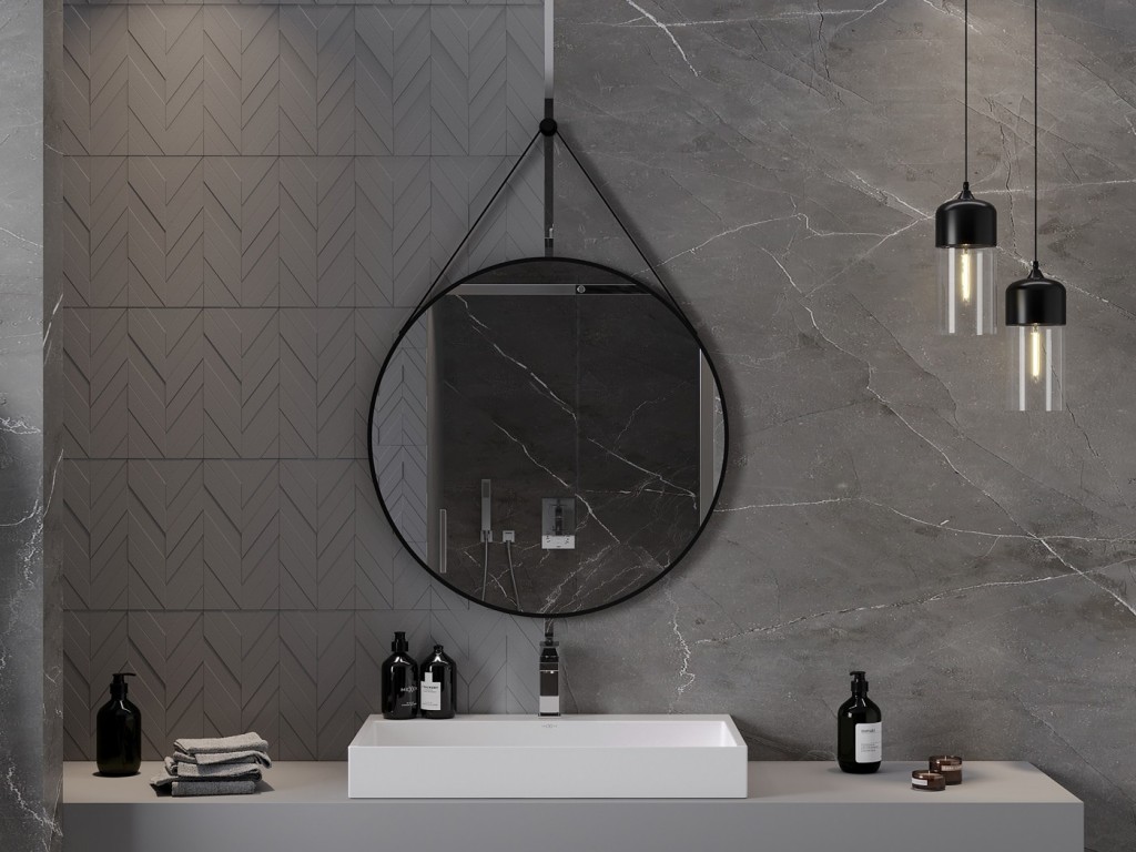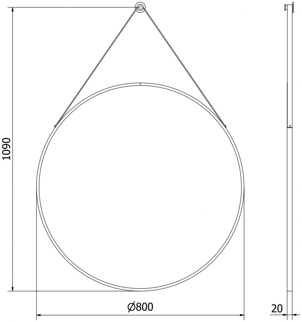 Jednoduché, moderné zrkadlo STRING s minimalistickým dizajnom. Má okrúhly tvar s priemerom 80 cm a je ohraničené čiernym hliníkovým rámom. Zrkadlo je zavesené pomocou popruhu z umelej kože, ktorý je pripevnený k hornej časti rámu. Popruh sa potom zavesí na háčik, ktorý je súčasťou balenia s montážnou sadou na zavesenie na stenu. Tento štýl by sa hodil do rôznych interiérov, napríklad do moderného, industriálneho alebo škandinávskeho štýlu.