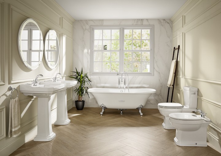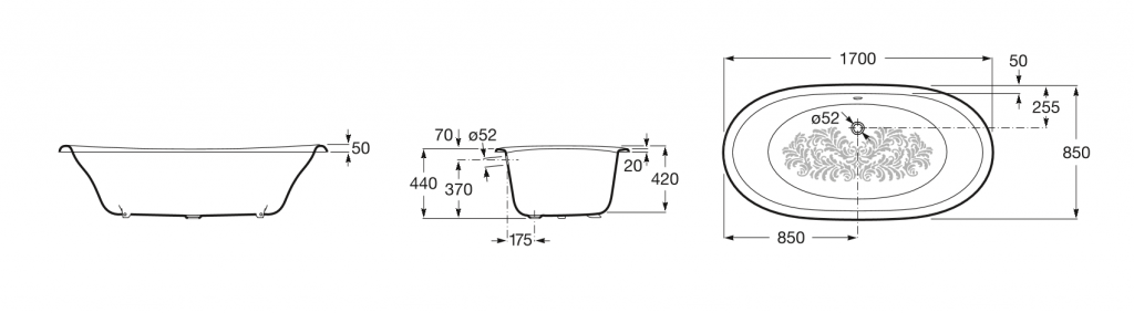 Voľne stojaca oválna liatinová smaltovaná vaňa Newcast s protišmykovým prevedením antislip v bielom prevedení.
