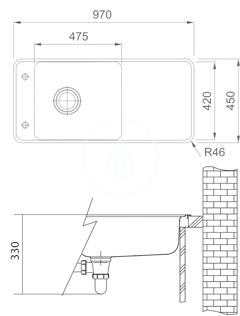 - sifón pre úsporu miesta 6/4 "s odbočkou na umývačku
