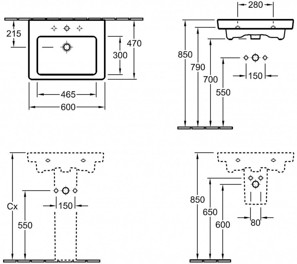 Umývadlo obdĺžnikového tvaru, s prepadom