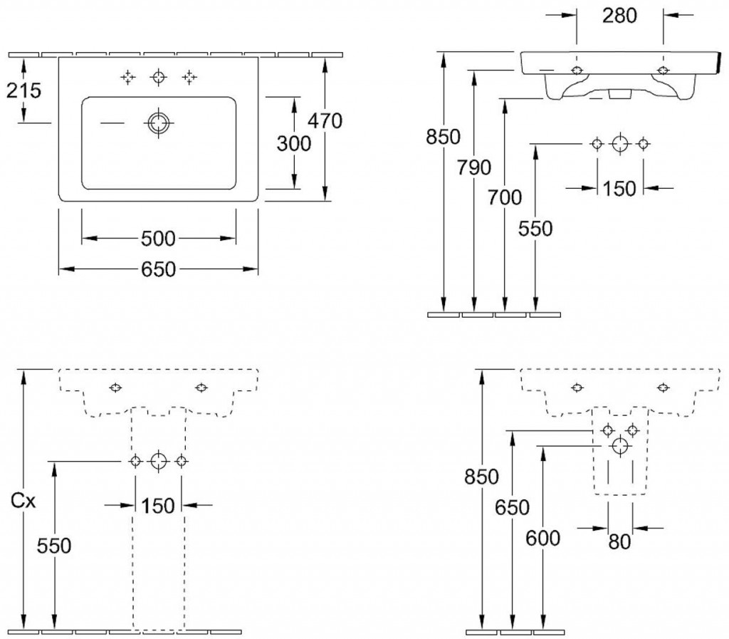 Umývadlo obdĺžnikového tvaru, s prepadom