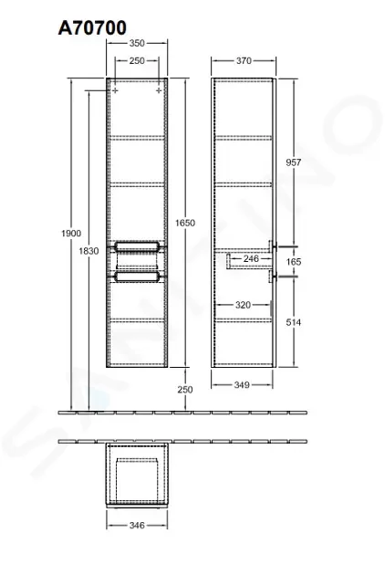 - rozmery skrinky: 350 x 1650 x 370 mm (ŠxVxH)