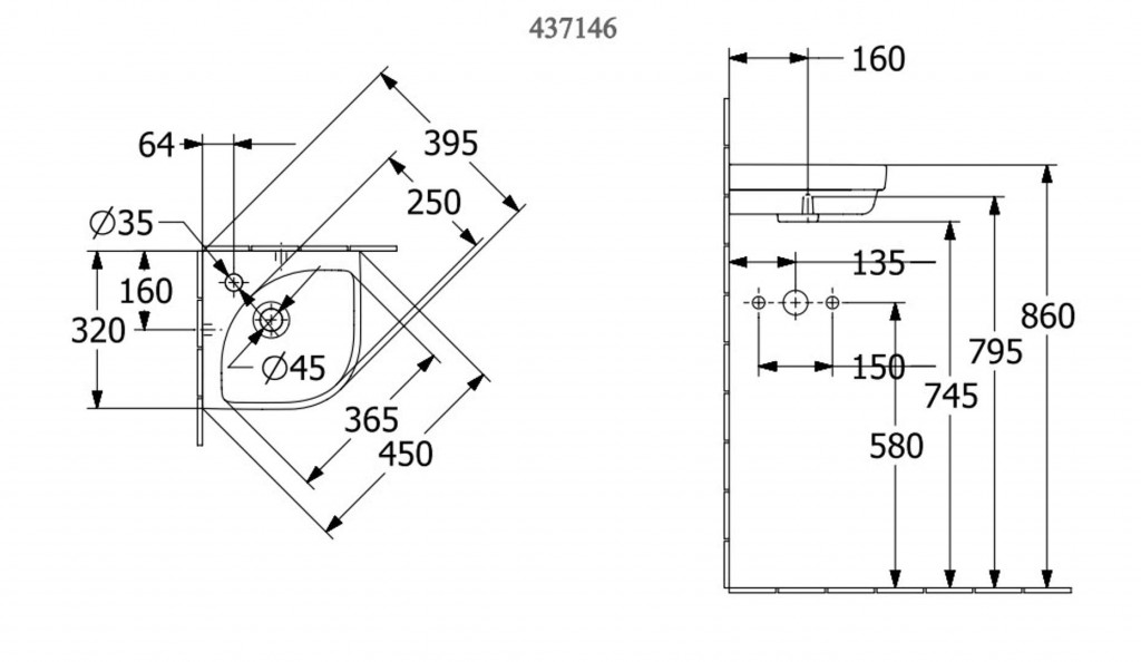 Rohové štvrťkruhové umývadielko