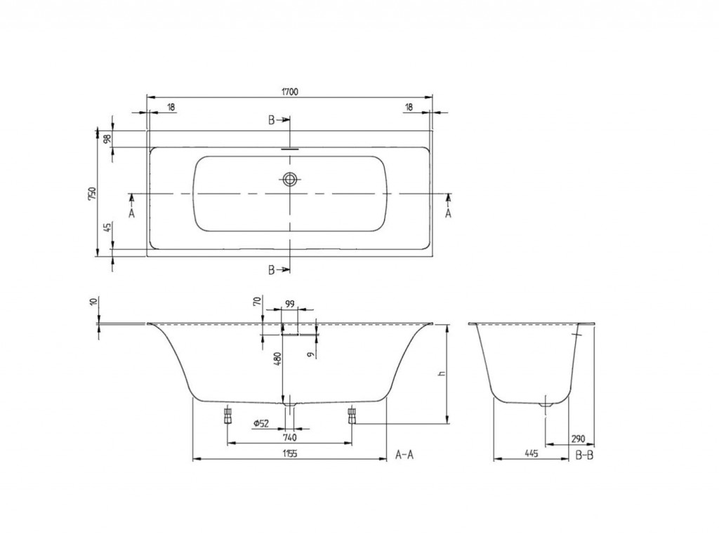 - Podstavné samolepiace nožičky na inštaláciu vane sú súčasťou dodávky, nastaviteľné 130-180 mm