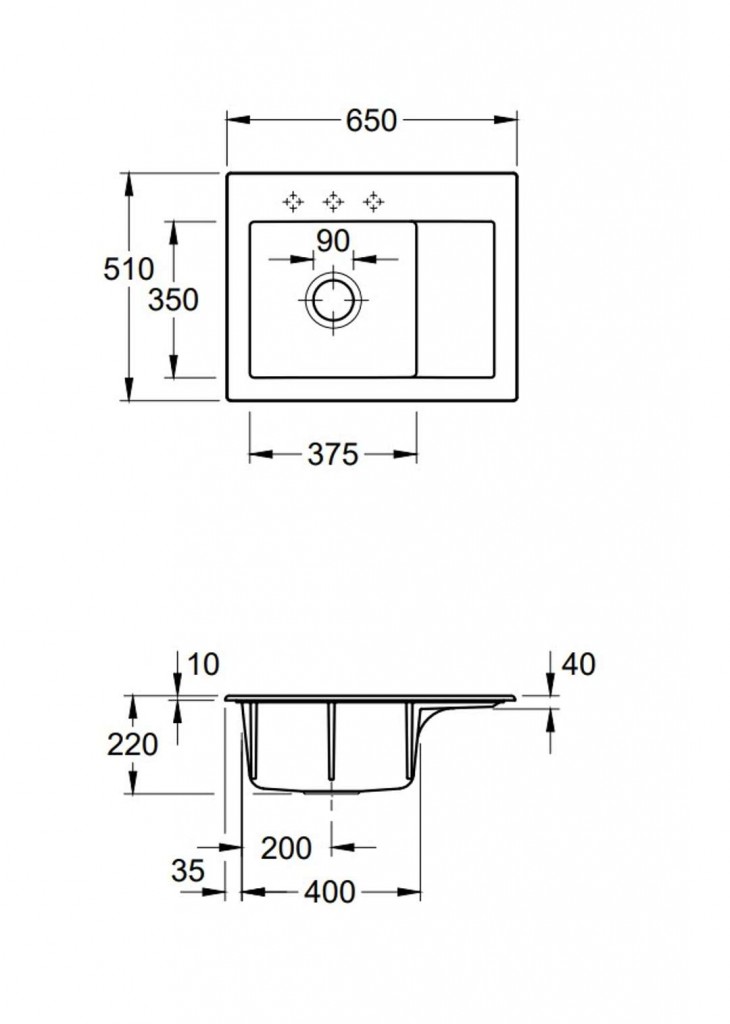 - celkový rozmer drezu: 650 x 510 mm