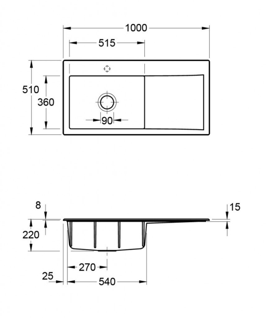- celkový rozmer drezu: 1000 x 510 mm