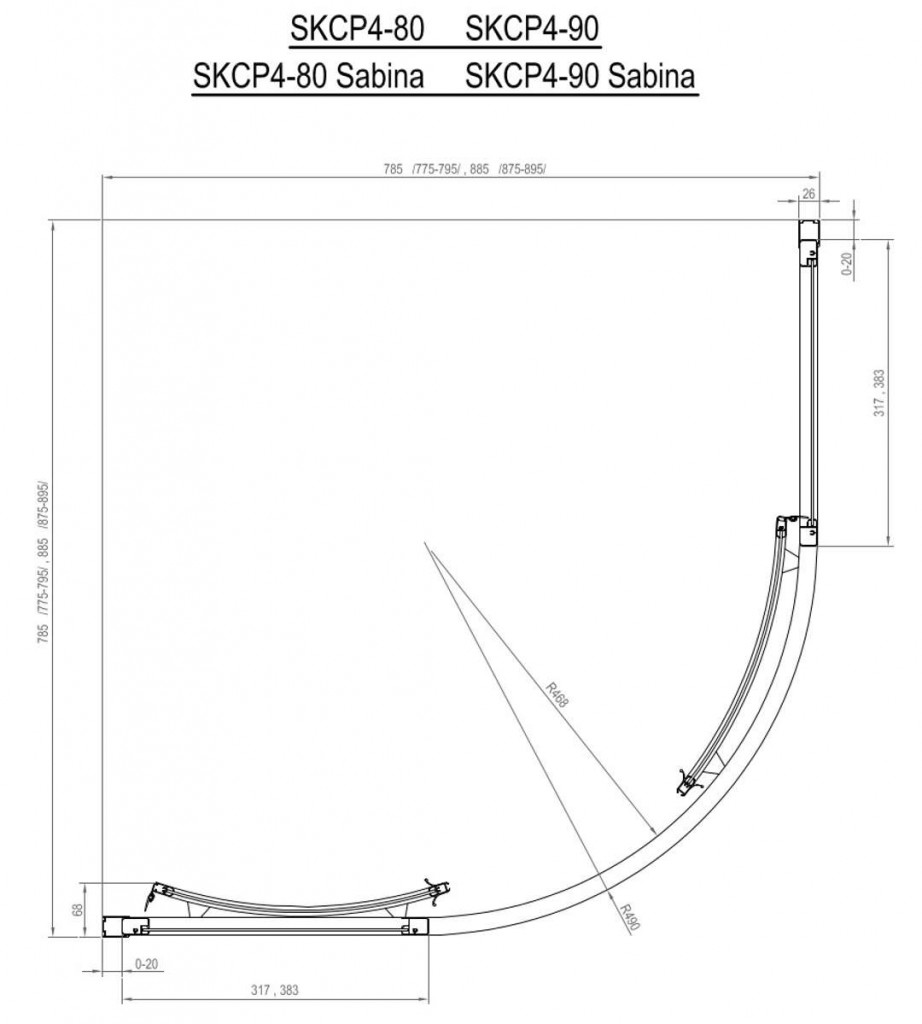 Štvrťkruhový sprchovací kút SKCP4-90, s posuvnými dverami