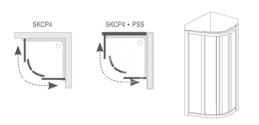 Čtvrtkruhový sprchový kout SKCP4-90, s posuvnými dveřmi
