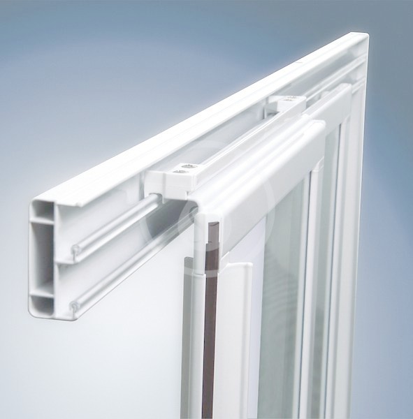 - výrobek se skládá ze 2 rovných pevných dílů a 2 rovných pohyblivých dílů, které tvoří posuvné dveře