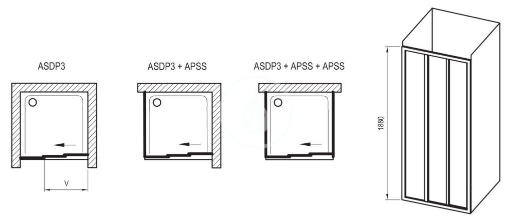 - instalace do vyzděné niky nebo v kombinaci se sprchovu stěnou APSS