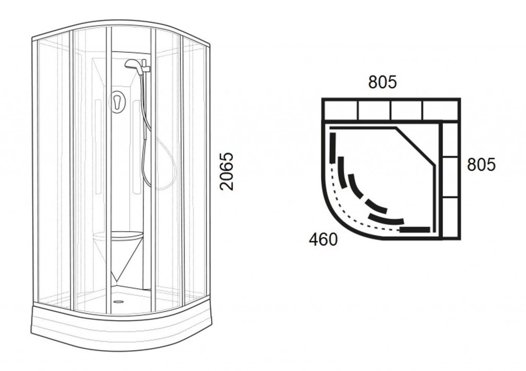- rozmery 805 x 805 x 2065 mm