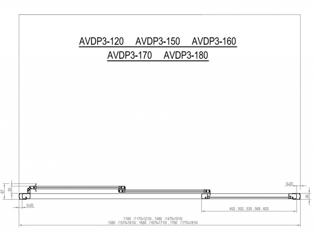 Posuvná vaňová zástena trojdielna AVDP3-160