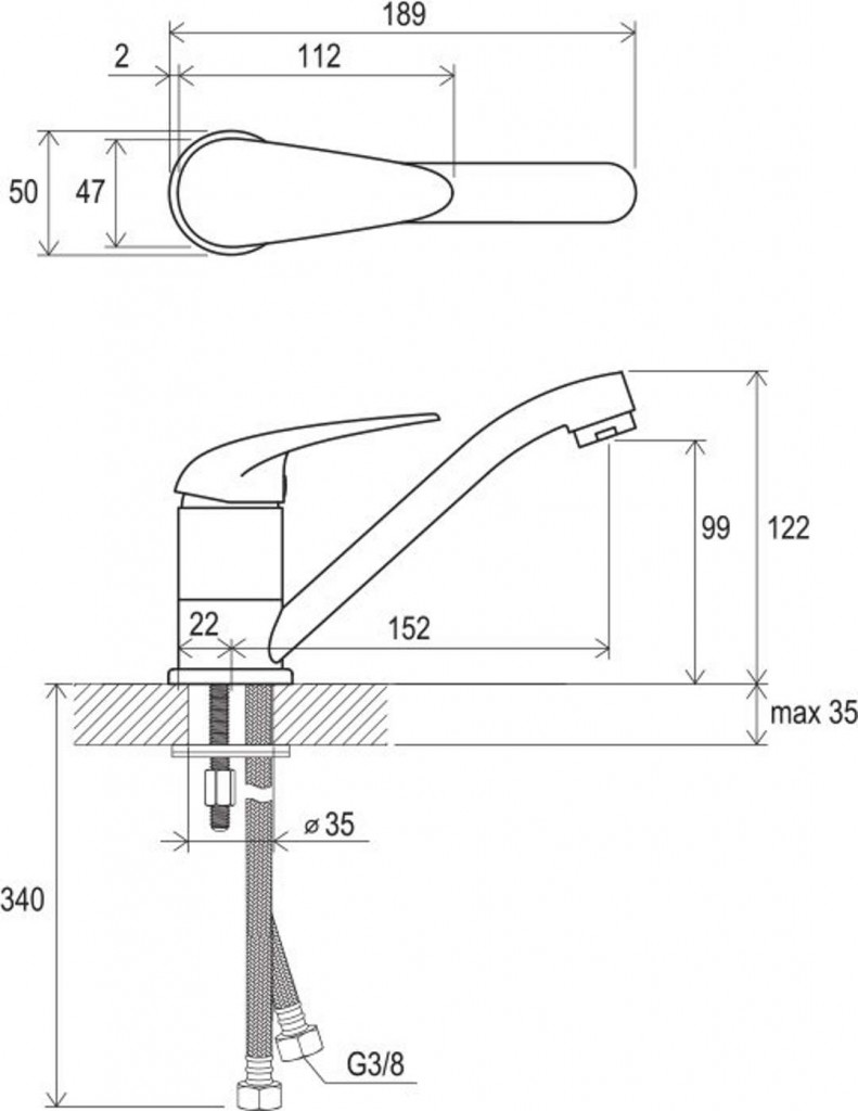 - pripojovacie hadičky: flexibilný 350 mm, priemer G 3/8