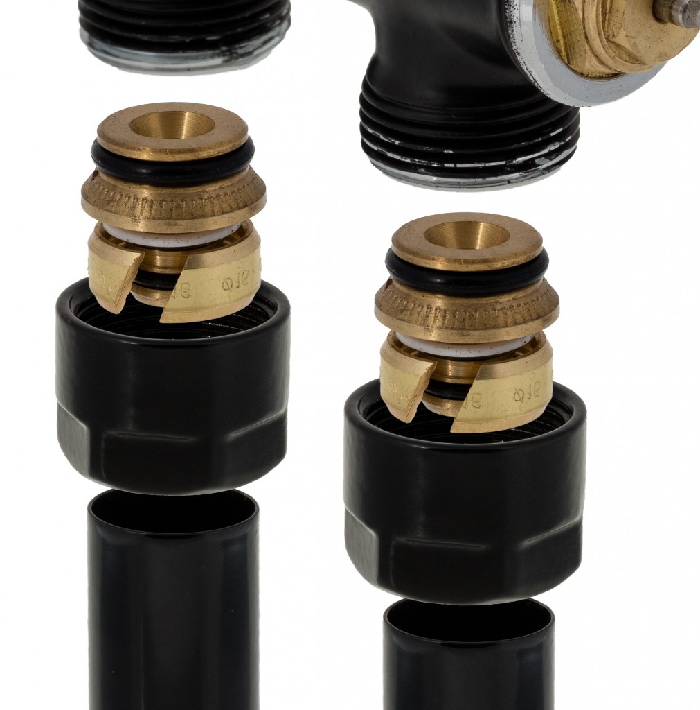 Zverné spojky sú určené pre ventily Z7 a Z4 a pre Pex-Al-Pex potrubie 16×2 mm . Na pripojenie každej rúrky k ventilu potrebujete vždy jednu zvieraciu spojku. Pre celý ventily potrebujete 2ks.